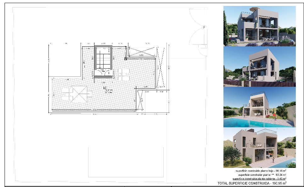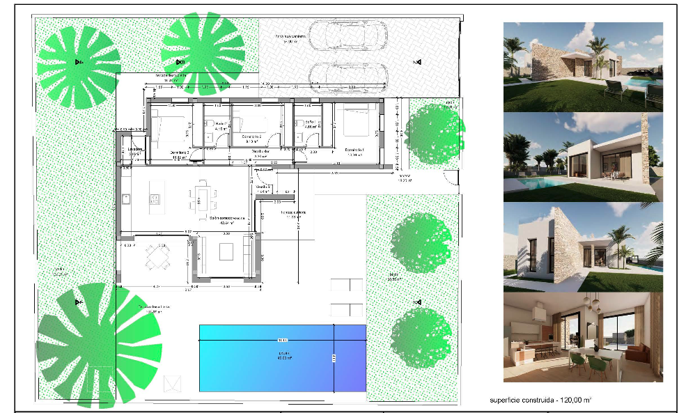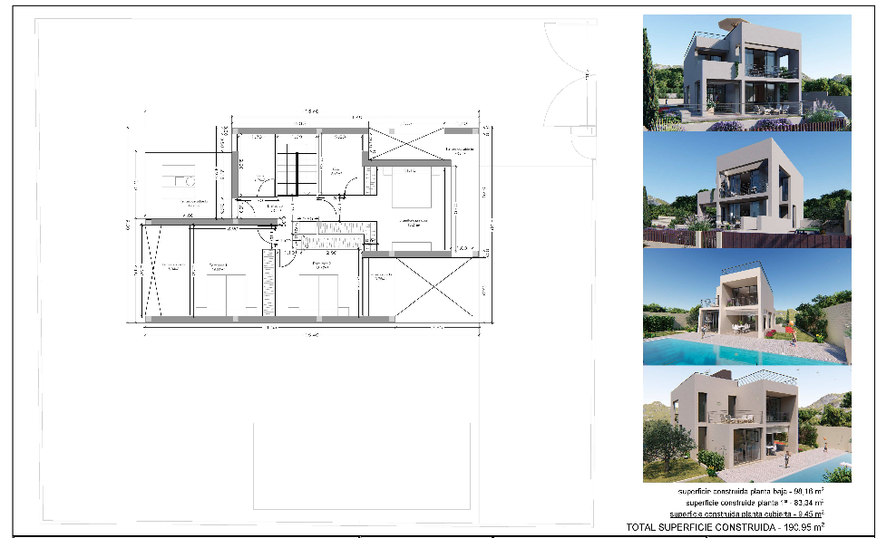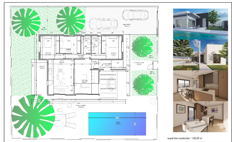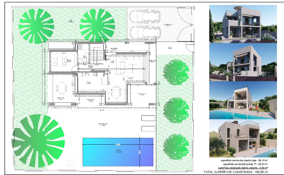 En una parcela privilegiada (600m2) y única, se presentan tres propuestas de diseño, todas con piscina incluida: