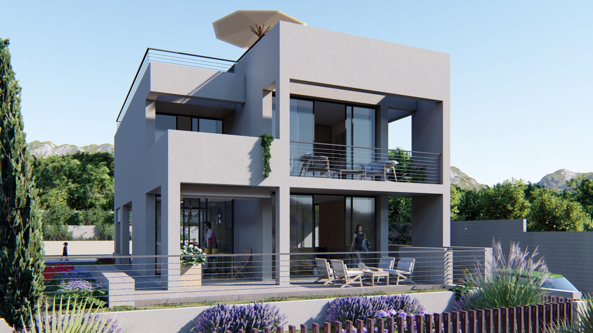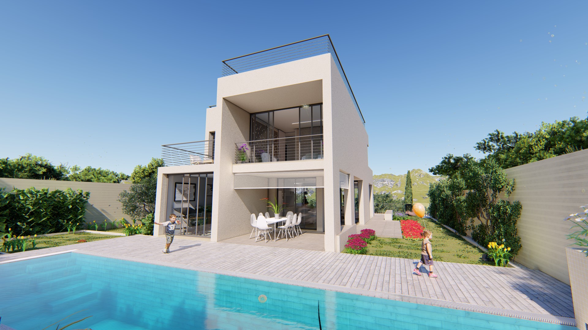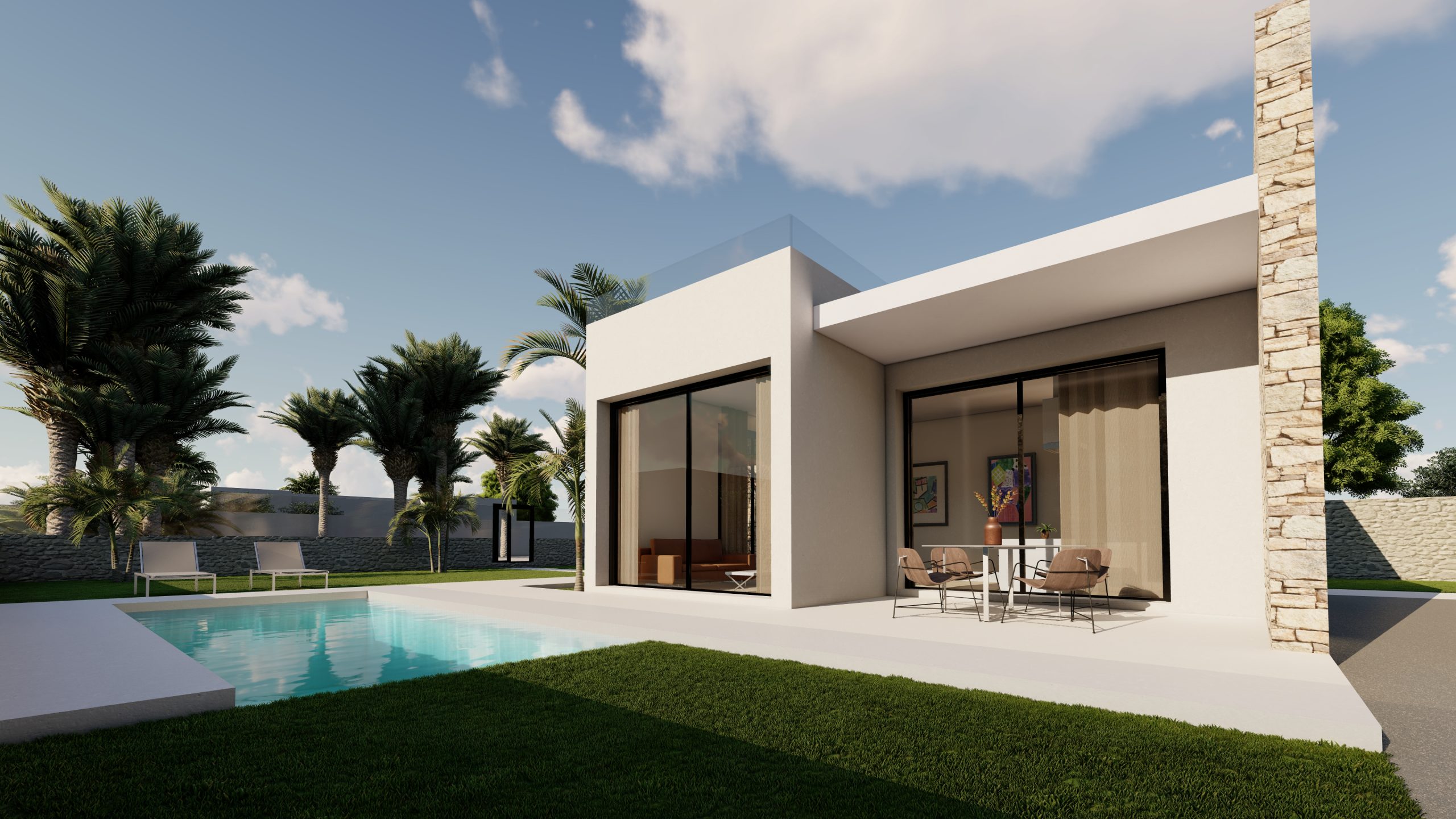 En una parcela privilegiada (600m2) y única, se presentan tres propuestas de diseño, todas con piscina incluida:
