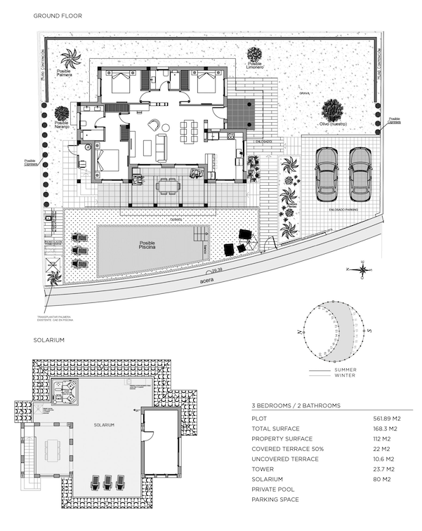 Una villa diseñada para vivir bien. Arquitectura mediterránea con alma contemporánea, luz natural en cada rincón y exteriores que enamoran: piscina privada, jardín vallado, tres terrazas y un espectacular solárium de 80 m² con vistas abiertas —perfecto para zona chill-out o cocina exterior.
